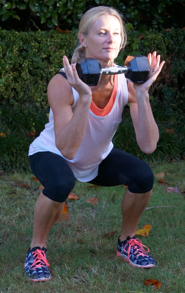 This weeks “go to” exercise is a simple one that anyone can do. In fact we do it around 30 times a day regardless of exercising – every time we sit and stand. You guessed it; the SQUAT. The squat works the leg and glute muscles – also engaging your core (you couldn’t squat without it). In fact studies have found higher activation from the core muscles during a squat than during exercises such as a plank and crunches. If you are loading your squat with any weight then you are also using your postural upper back muscles and arms. And a SQUAT PUSH will give you an almost total body workout. A fun short session to try in your backyard is to grab a kettlebell and do 10 sets of 10 squat pushes. Do these with a rest of 20-60 secs between sets, and use your discretion when it comes to the extent of “fullness” of your movement. Don’t push into any pain (ie if your hips/knees won’t allow you to squat very low) then aim to just keep your lumbar spine neutral (unmoving) through the movement. When squatting you move entirely from your hips and knees (simultaneously). If it’s easier for you to get lower with your feet a bit wider apart then that’s fine too. But ensure at all times that the line of your hips, knees and feet is a straight one if you’re looking at yourself in the mirror (don’t turn your knees either out or in from that line).